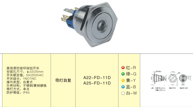产品名称:A22-FD-11D